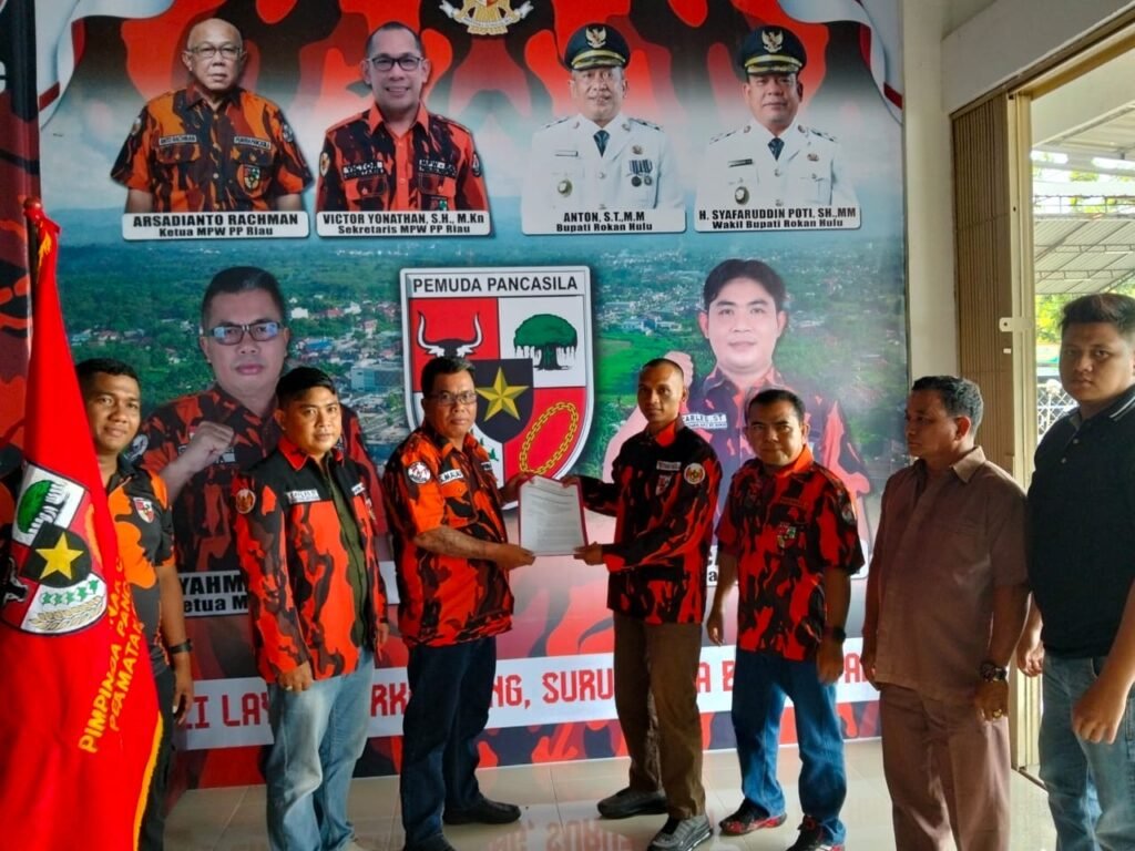 Rokan Hulu,- Ketua Majelis pimpinan cabang pemuda pancasila kabupaten rokan hulu syahmadi malau di dampingi sekretaris carles ST dan ketua OKK Anton ade putra menyerahkan SK karateker PAC kecamatan rambah kabupaten rokan hulu pada hari Rabu 7 Januari 2026